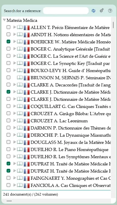 L'analyse de cas ne pourrait pas être plus facile. Recherchez dans plus de 20 répertoires les rubriques qui conviennent le mieux à votre patient. La répertorisation se fait instantanément en un seul clic.